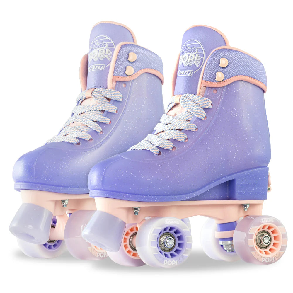 To complete the package, Crazy includes coordinating accessories: stunning glitter wheels, toe stops, and fashionable laces. With these remarkable roller skates, you can make a fashion statement without saying a word.