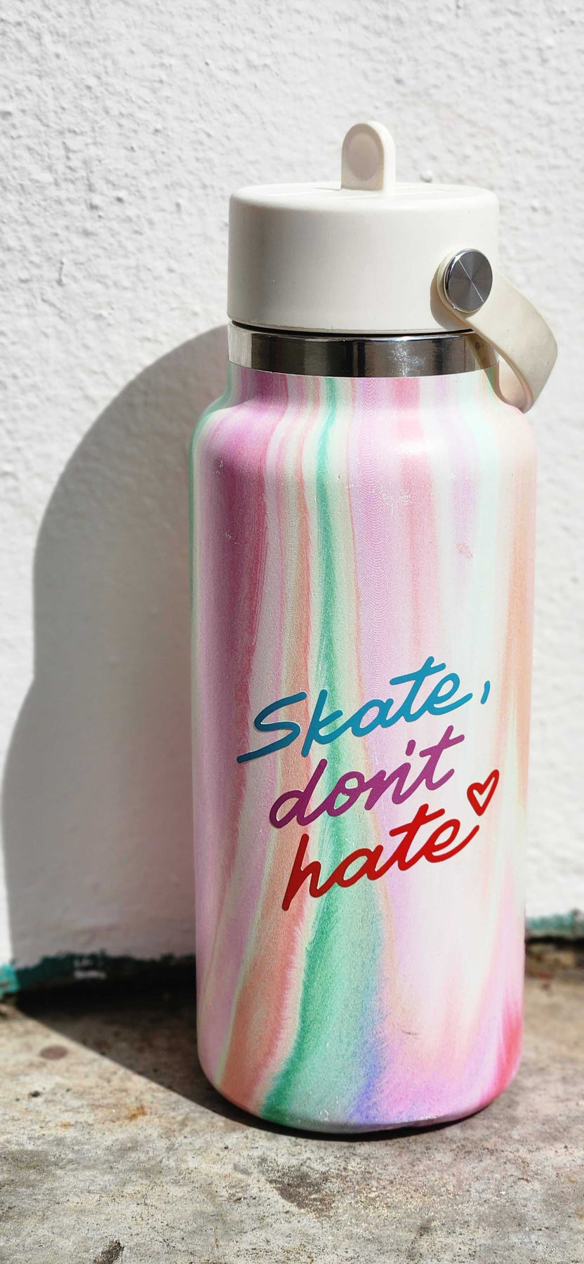 Add a splash of fun to your water bottle or favorite spot with the Skate Don’t Hate Sticker. Measuring about 3" x 2.5", this playful decal is perfect for expressing your love for skating while keeping the vibes positive.