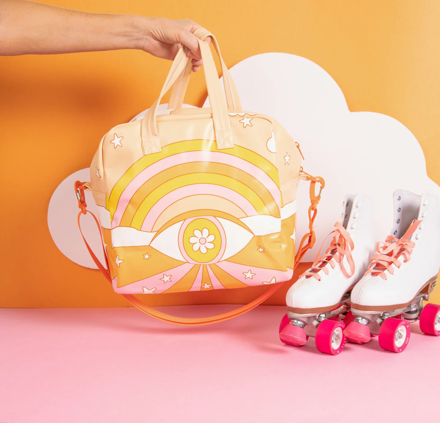 Hit the town, the skating rink or the gym in style with this super cute, fun, Skate Bag! Pack up your skates, gear, or anything else you may need on your day, night or even weekend out. You can wear it over the shoulder as a cross-body or by your side. Either way, these colorful options simply won't quit.