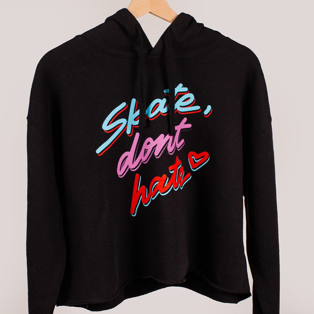 Esta impresionante estampa fue ilustrada por la artista local de San Diego Melissa Cabral. Inspirada en el patinaje sobre hielo en el paseo marítimo de San Diego, Lil' Fritz adorna el pecho delantero con la ilustración completa del cartel retro en la parte posterior. (¡Colocada un poco más abajo para que no quede cubierta por la capucha!)
