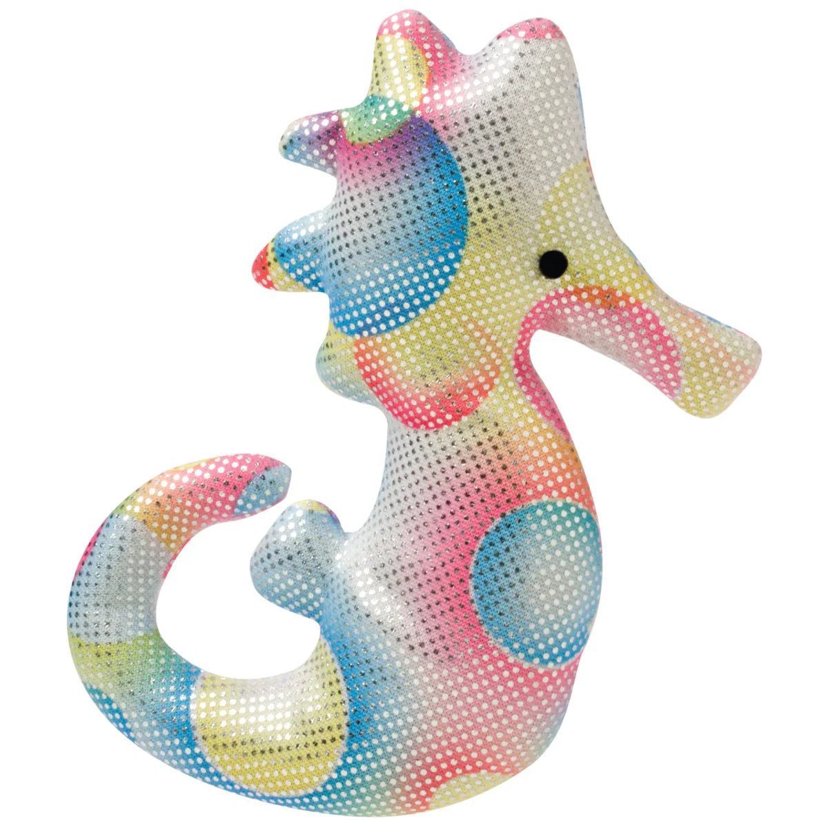 Toysmith’s Sand Animals Sea Life sand-filled toys are a favorite item. Choose from 6 shimmering sea creatures including a crab, sea turtle, octopus, shark, dolphin, and sea horse. Each comes in a variety of multi-colored options with black beaded eyes and a lustrous shimmering fabric covering. These bean-bag sea creatures measure 6 to 12 inches long.